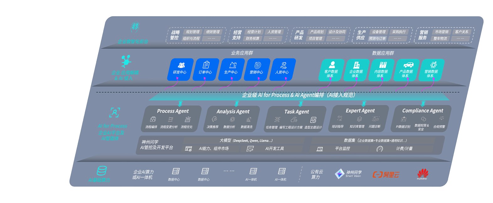 端到端的一站式AI工作空间深度融合了从企业战略规划到日常经营的全流程业务板块,,,,定向解决车企内部领域多、、、部门多、、链条长、、、、场景碎片化等难题,,支持车企快速构建以AI为核心的生产力写作体系,,,,实现任务执行与AI能力的无缝集成与交互